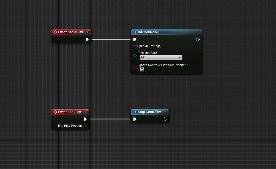 First we start the plugin via the "Begin Play" event in the ThirdPersonCharacter Blueprint. Via "End Play" we stop the plugin.