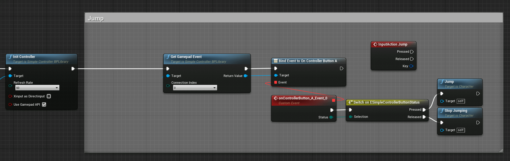 Now we can replace the Unreal event "InputAction Jump" with the following construction.