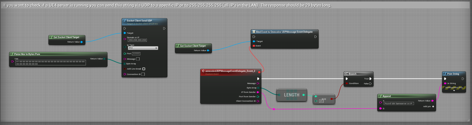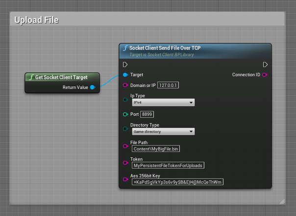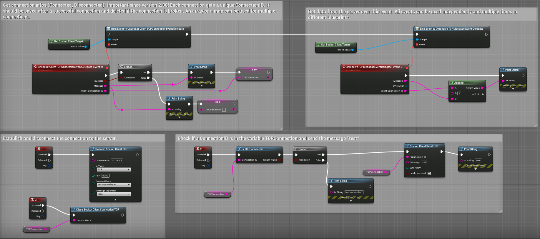 TCP example. You can find this example in the Levelblueprint (SocketClientDemoTests Map) in the