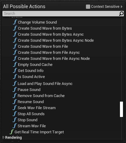 Since version 2.7 Sound Wave Procedural object references can be created. With these variables you can use further Unreal sound functions.