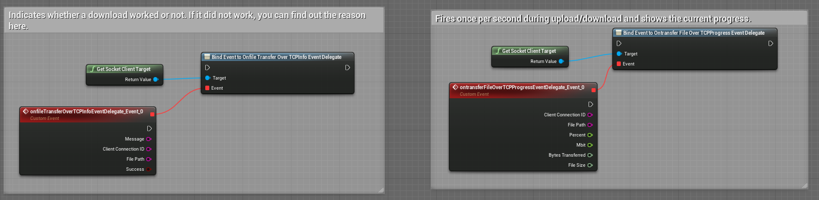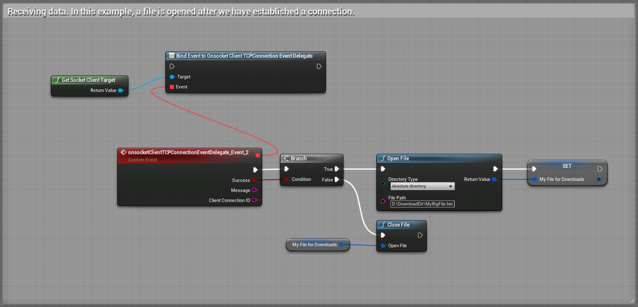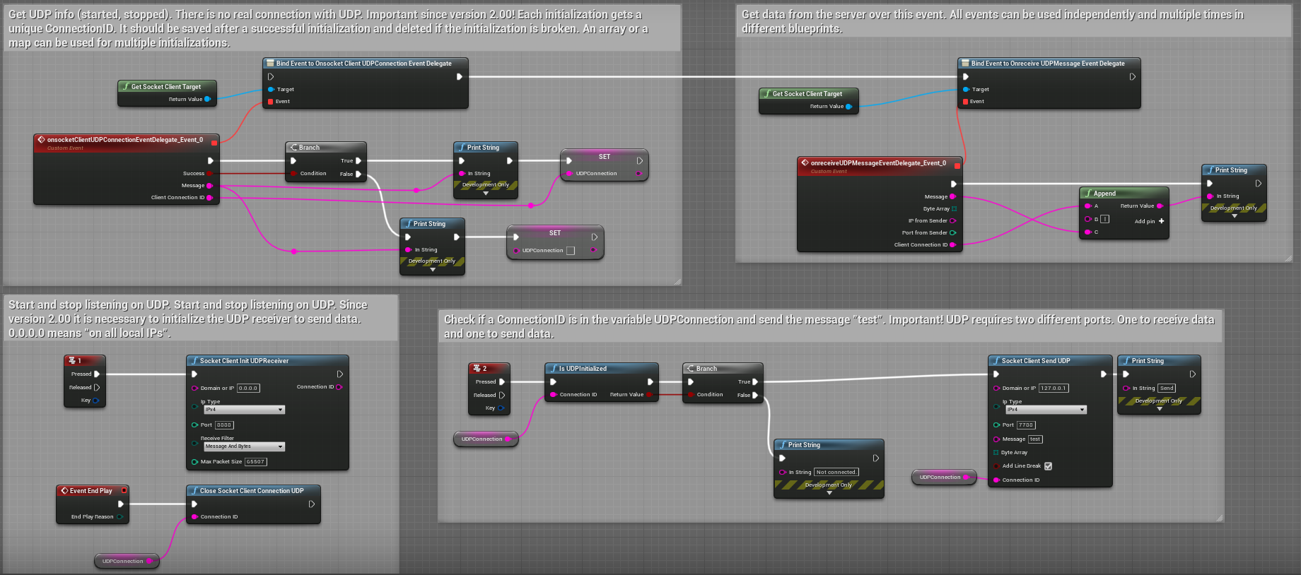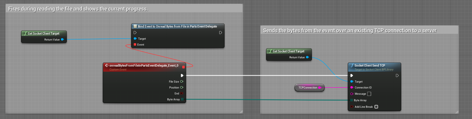 TCP example. You can find this example in the Levelblueprint (SocketClientDemoTests Map) in the